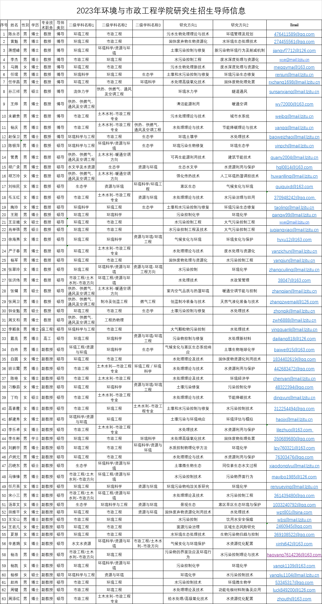 2023年环境与市政工程学院研究生招生导师信息