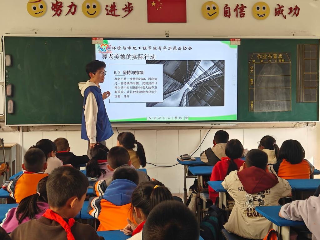 为深化小学生对尊老爱幼这一中华传统美德的理解,培养他们对长辈的敬爱与关怀之情,推动尊老风尚在校园及社会的广泛传播,11月15日,环境与市政工程学院青年志愿者协会与安宁区水挂庄小学联合举办了以“敬老童心行,美德共传承”为主题的敬老宣讲活动。