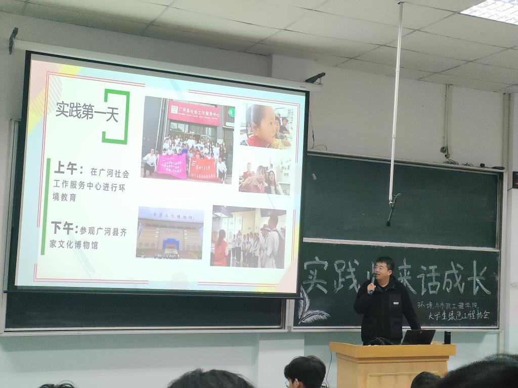 为总结我院2023年暑期社会实践成果,10月23日,环境学院2023年“实践归来话成长”心得分享会于七教2403成功举办。环境学院党委副书记、副院长李健、社会实践指导老师、环境学院团委书记赵娟、辅导员范晓、孙亚欣以及全体实践队员、全体团学干部共二百余人参加本次分享会。