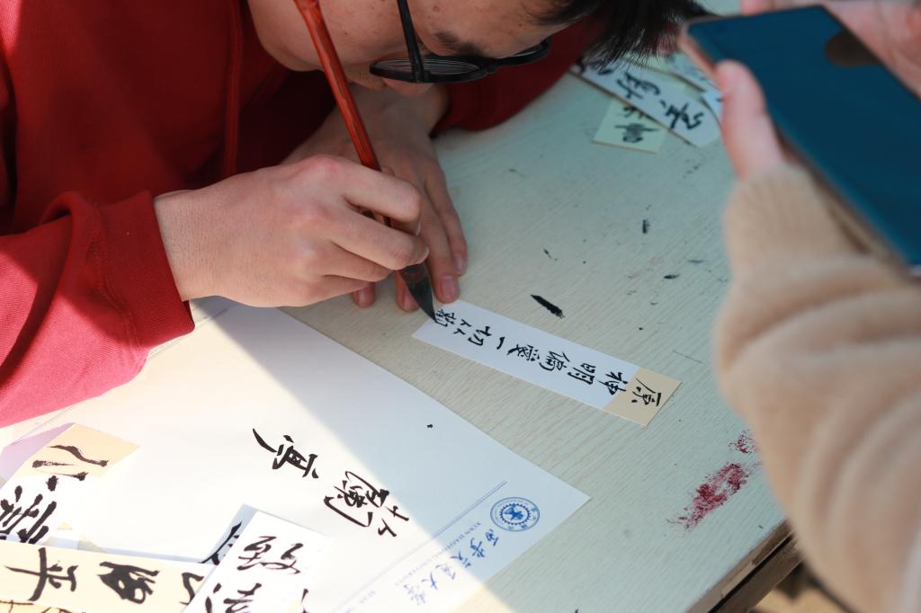 为了让同学们了解书法传统文化,更好地记录校园生活,环境与市政工程学院青年志愿者协会于10月22日于图书馆前广场成功举办“楮墨传情,寄君菲籍”书签书写活动,全校一千七百余学生参加活动。