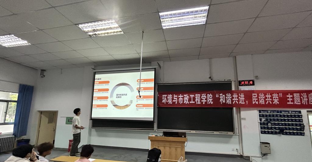 为深入贯彻落实习近平总书记关于加强和改进民族工作的重要思想,进一步铸牢中华民族共同体意识,2025年5月24日,环境学院在第七教学楼开展民族团结进步宣传月活动暨“和谐共进,民谐共荣”主题讲座。