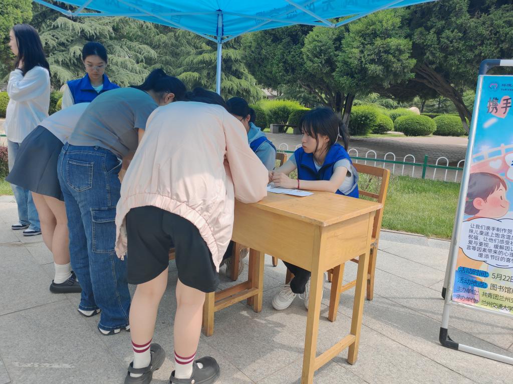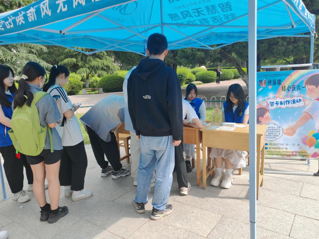 为了向特殊儿童感受到每年孩子们最期待的儿童节的快乐温馨的氛围,并让他们感受社会的关爱与重视,缓解心理孤独,增添节日的喜悦,以及让更多人了解他们的处境与需求,推动形成理解、包容、帮助特殊儿童的良好社会氛围。2025年5月22日星期四,环境与市政工程学院青年志愿者协会在逸夫图书馆前鸽子广场举办了“携手传温暖,结心庆六一”——贺卡搭建暖心彩虹桥活动。