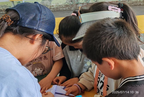 第八期一厘米社会实践团带着满腔的热忱和期待,以青春的智慧和力量,投身乡村教育。通过“课内解惑+课外交心”的双轨模式,在讲台上,用自制教具生动地演示科学原理,创造性地为英语单词编撰方言歌谣,激发孩子们的学习兴趣;放学后,又化身为知心哥哥姐姐,在蝉鸣声中与小朋友共同绘制“梦想风筝”,让“我要当老师”“我想造火箭”的纯真宣言传递着对未来的无限憧憬。