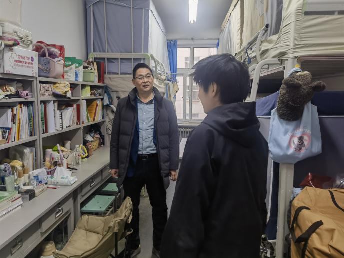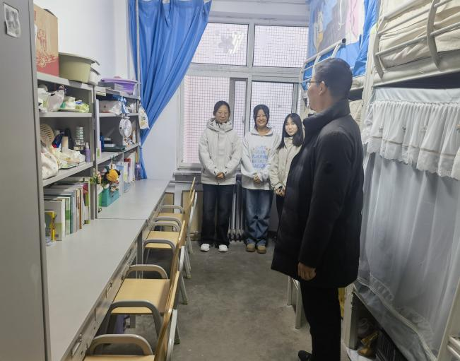 深入学生宿舍期间,杨庆细致检查安全隐患,与同学们亲切交流生活学习情况,针对学业压力、生活适应等问题给予指导帮助。他强调要建设文明和谐的宿舍文化,打造温馨舒适的生活环境。食堂走访中,他认真听取学生对餐饮服务的意见建议,并倡导文明就餐理念,引导同学们践行“光盘行动”,共同营造良好的校园就餐环境。