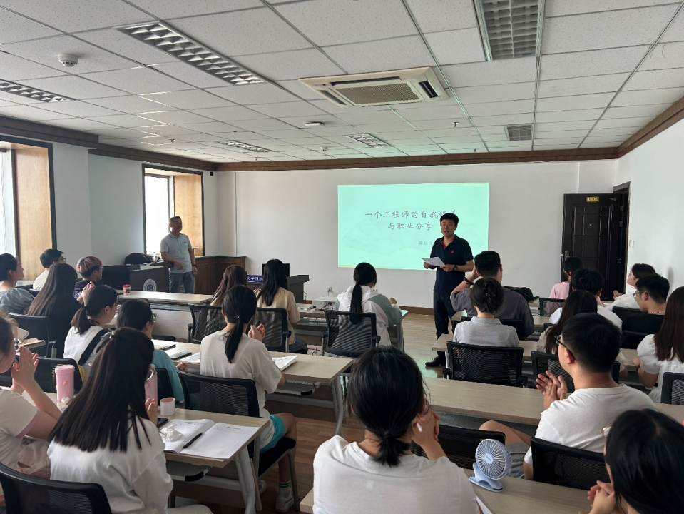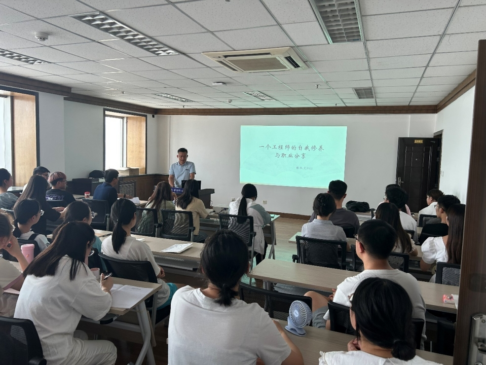 滕红文高级工程师首先回忆了大学美好的学习时光和工作经历。随后,滕红文高级工程师详细介绍他所建设的工程项目包括:富士康生活污水处理厂、宜宾纸业中段废水调试、某酒厂固态酿酒废水设计调试、高压隔膜板框项目等。滕红文高级工程师说到:每一个项目都是对一个工程师职业操守和专业能力的检验,作为新时代下的优秀大学生希望同学们能够不忘初心牢记使命。最后,滕红文高级工程师指出:同学们从大学生转向社会的过程中,第一份工作是非常重要的,不管多么艰辛希望同学们都能坚持下来,以后的职业生涯就会越来越光明!