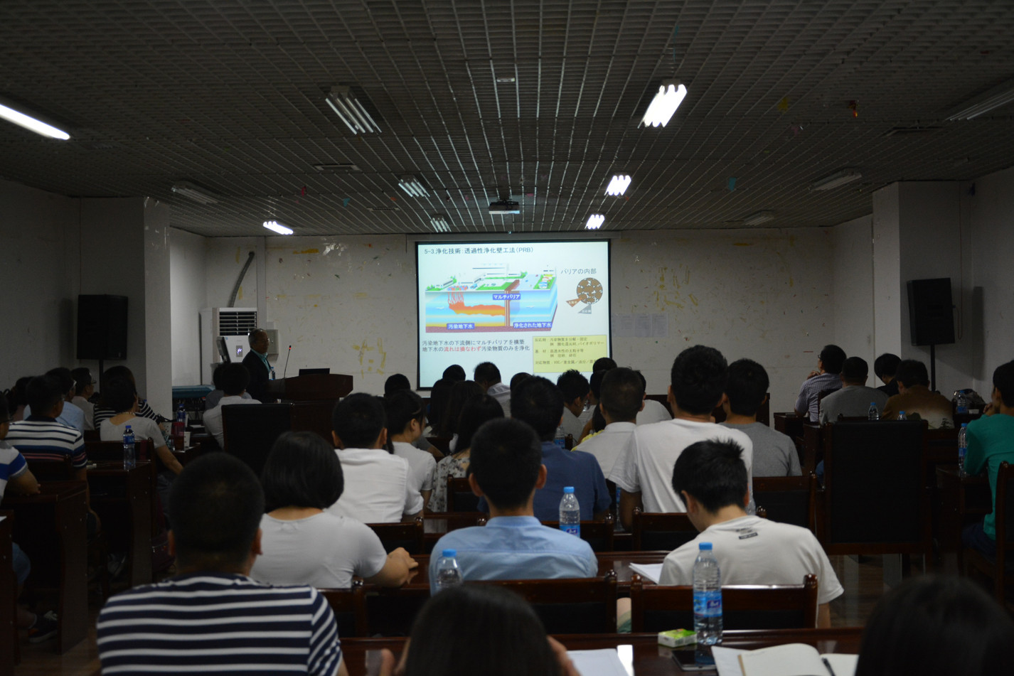 佐藤健教授详细讲述了日本地下水水体主要污染物及净化方法,并介绍了日本现有较好的净化技术,包括土壤清洗法、透过性净化壁法、铁粉还原分解法等。佐藤健教授长期从事土壤与地下水重金属污染的调查与治理研究工作,专注于铅污染土壤中的污染物行为、净化和固定技术研究。培养了大批优秀的环境技术人才。
