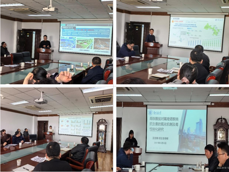 学术研讨环节分别由四位青年教师围绕环境与生物交叉领域的前沿课题作了精彩报告。环境学院刘宏副教授探讨了高氨氮废水脱氮技术的生物与膜过程演进;生物学院刘洋副教授分享了根际微生物增强作物抗逆性与促进生长的机制及应用;环境学院王忠娟讲师阐述了高铁酸盐对抗生素的氧化机制与毒性转化;生物学院李莎副教授介绍了重金属污染评价与治理研究。报告内容紧扣学科交叉,展现了青年教师扎实的科研功底和创新的学术思维,激发了现场参会人员浓厚的兴趣和深入思考。