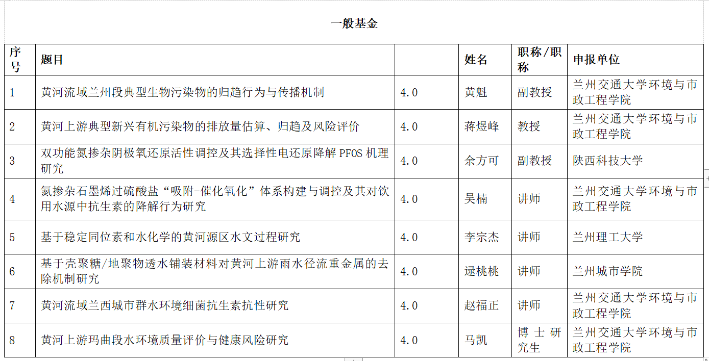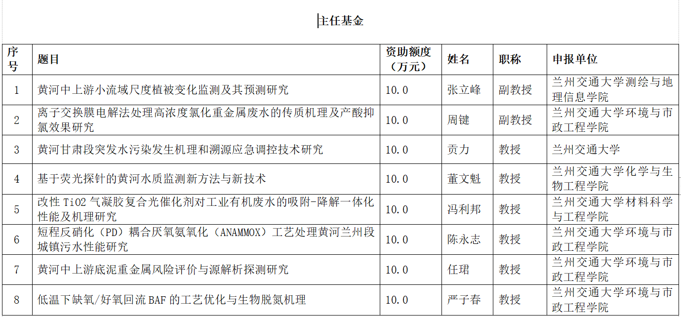 2021年度甘肃省黄河水环境重点实验室开放课题评审工作已完成。本次共收到21项开放课题申请书,根据重点实验室外聘学术专家通讯评议和重点实验室学术委员会评意见,评选出立项资助开放课题16项,资助研究经费合计112万元。其中主任基金项目8项,资助经费80万元;一般开放基金项目8项,资助经费32万元。具体立项课题名称及资助额度清单附后。