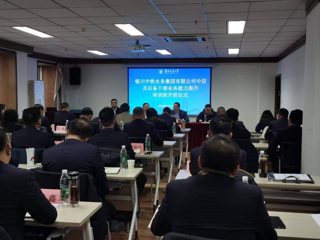 12月9日,银川中铁水务集团有限公司中层及后备干部业务能力提升培训班在兰州交通大学开班,来自银川中铁水务集团有限公司的40余名干部参训。中铁水务副总经理,银川中铁水务党委书记、董事长杨忠雄,兰州交通大学环境与市政工程学院院长杨庆,银川中铁水务副总经理宫京鹏出席开班仪式。会议由兰州交通大学环境与市政工程学院副院长黄魁主持。