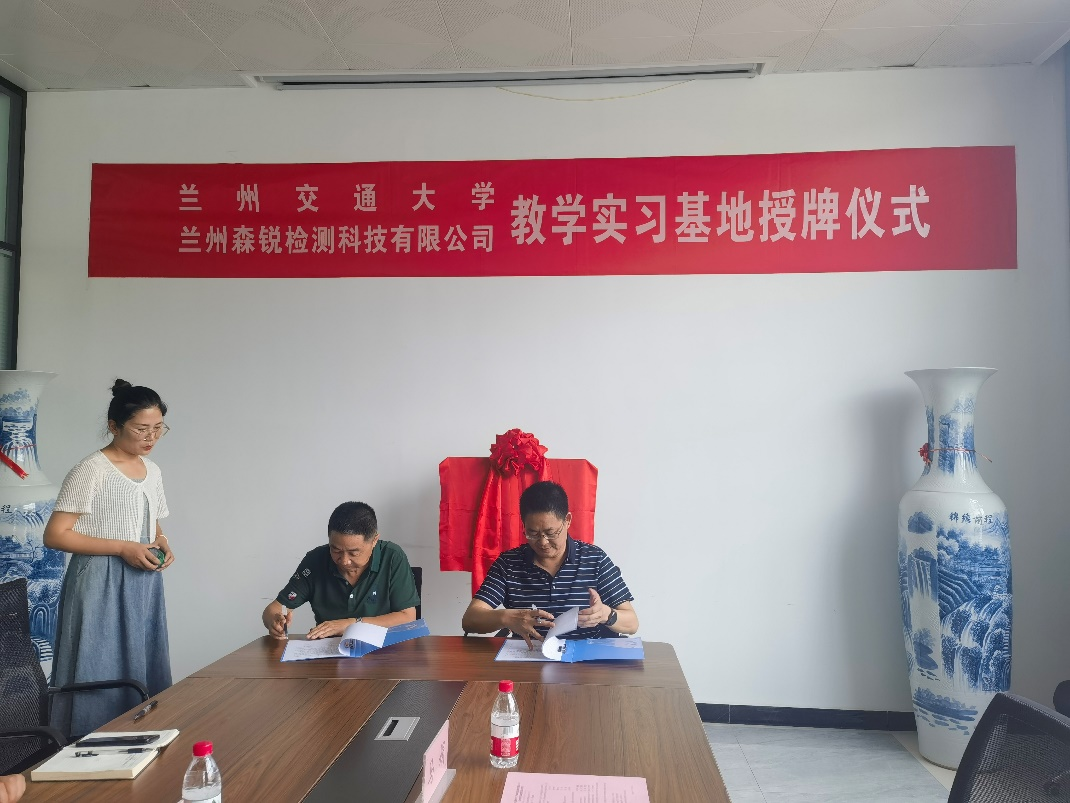 随后,杨庆院长与兰州森锐检测科技有限公司负责人签订了本科教学实习基地协议,并共同为教学实习基地揭牌。仪式结束后,公司负责人带大家参观了兰州森锐检测科技有限公司的实验室环境和大型仪器设备。