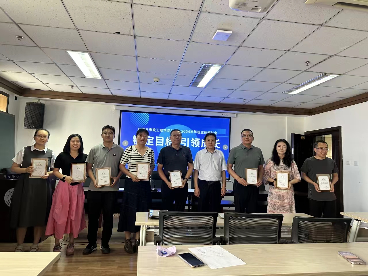 会上,王海涌代表学院宣读了《关于表彰2024届本科生班主任的决定》及《关于聘任2024级本科生班主任的决定》。学院领导分别向11名2020级班主任颁发了荣誉证书,向10名2024级新任班主任颁发了聘书。