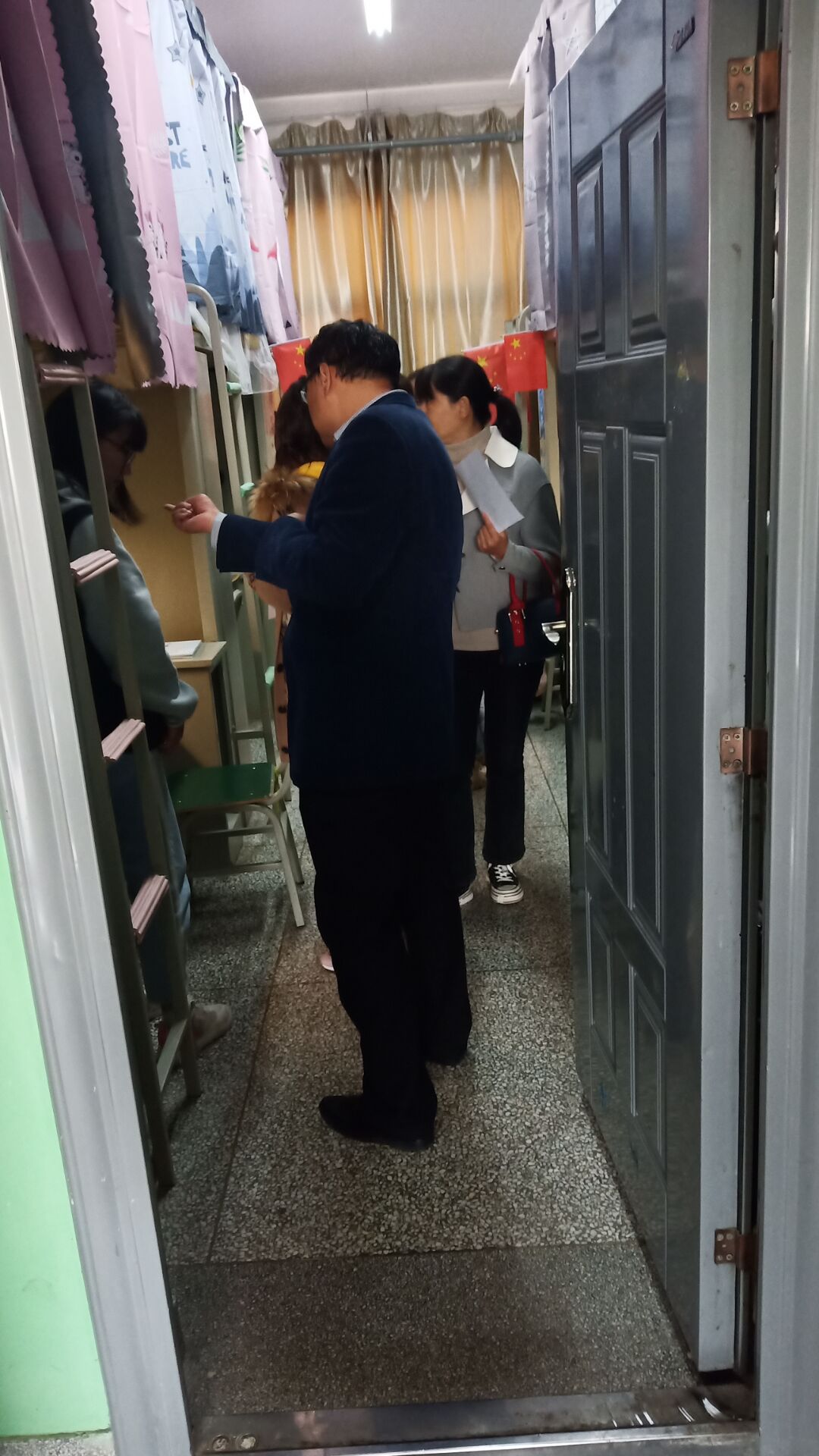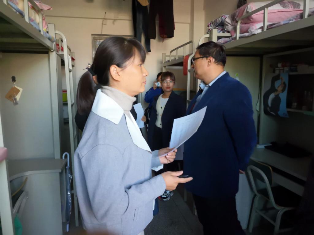 老师们依次走访了所有女生宿舍,参观了宿舍装饰,对装饰精美的宿舍给予表扬,对宿舍的不足之处提出了诸多建设性的意见。参观之余,老师们对各个宿舍的装饰成果进行了打分评比。