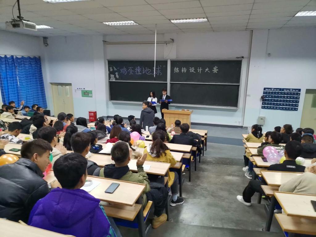 为营造浓郁的科技氛围,拓展科技视野,培养广大学子的创新精神和实践能力,环境学院学生会于11月10日在第七教学楼2403和第五教学楼举办环境与市政工程学院第二届“鸡蛋撞地球”结构设计大赛。