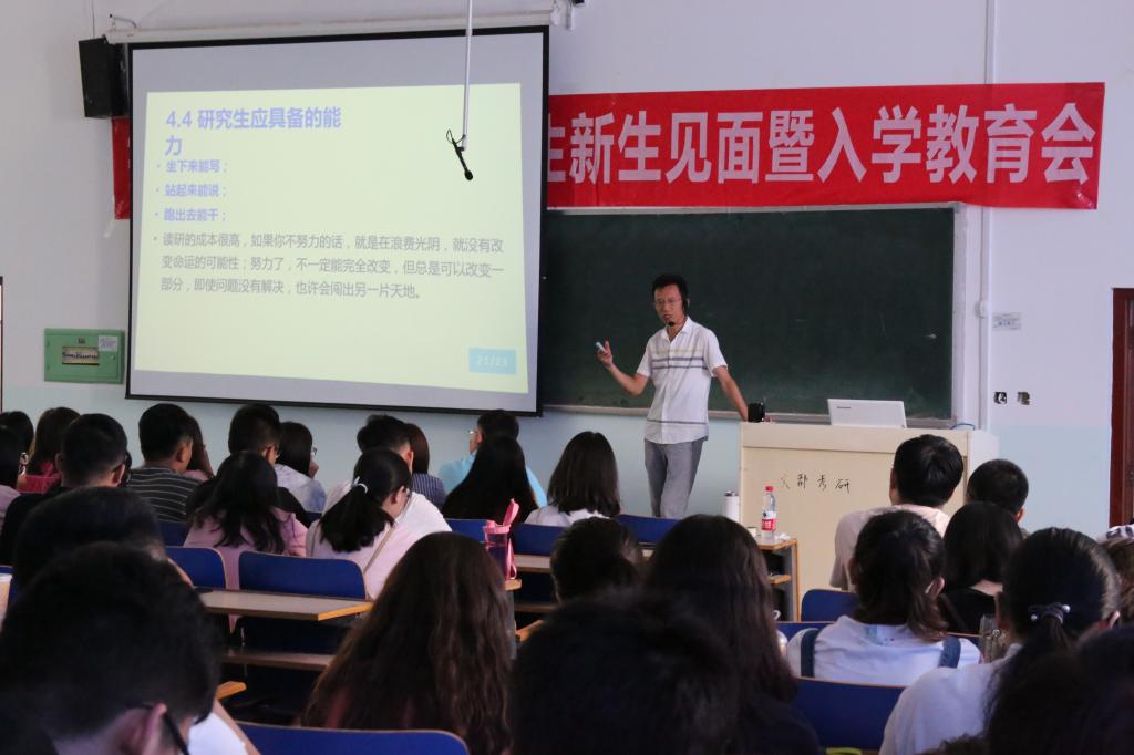杨庆书记围绕“为什么要读研究生”和“怎样做好一个优秀的研究生”两个话题进行了一场生动的报告,帮助同学们更快的了解和适应研究生生活,并鼓励大家多思考,多创新,使同学们受益颇深。杨书记还提出,研究生应该自觉抵制“学术不端”的行为,端正学习态度,严谨治学,积极地与导师沟通,自觉推进学习进度。