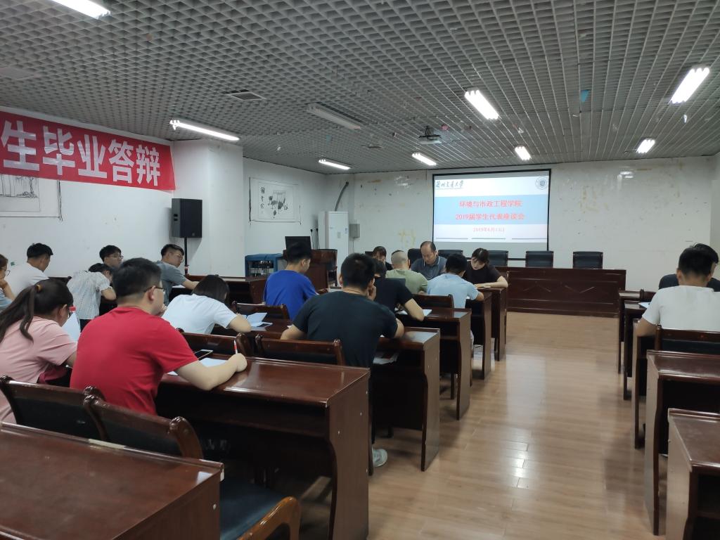 张洪伟副院长主持座谈会,介绍了此次会议的主题与目的,希望毕业生在离校前对教师教学、学生管理、课程体系设置、教学基础设施、实验实践条件、实习安排、以及后勤服务、宿舍管理和校园建设等方面存在的问题及相应改进措施提出针对性意见与建议,并填写《环境与市政工程学院2019届学生代表座谈会学校、学院发展建设意见反馈表》和《环境与市政工程学院2019届学生代表教学评价反馈表》,帮助学校学院进一步完善工作,促进持续改进,提升教学水平。