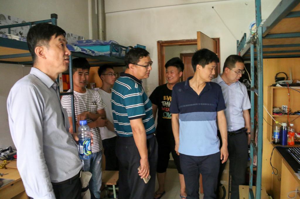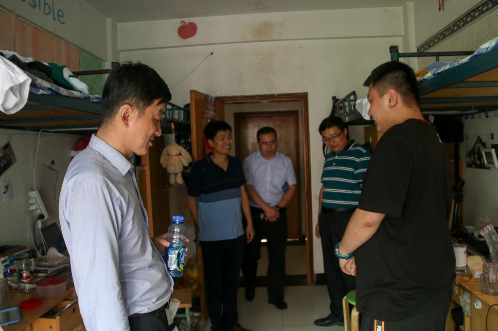 6月21日下午,环境与市政工程学院联系班级领导赵保卫院长、韩建峰副部长、宋小三副院长、李健副院长走访学生宿舍。