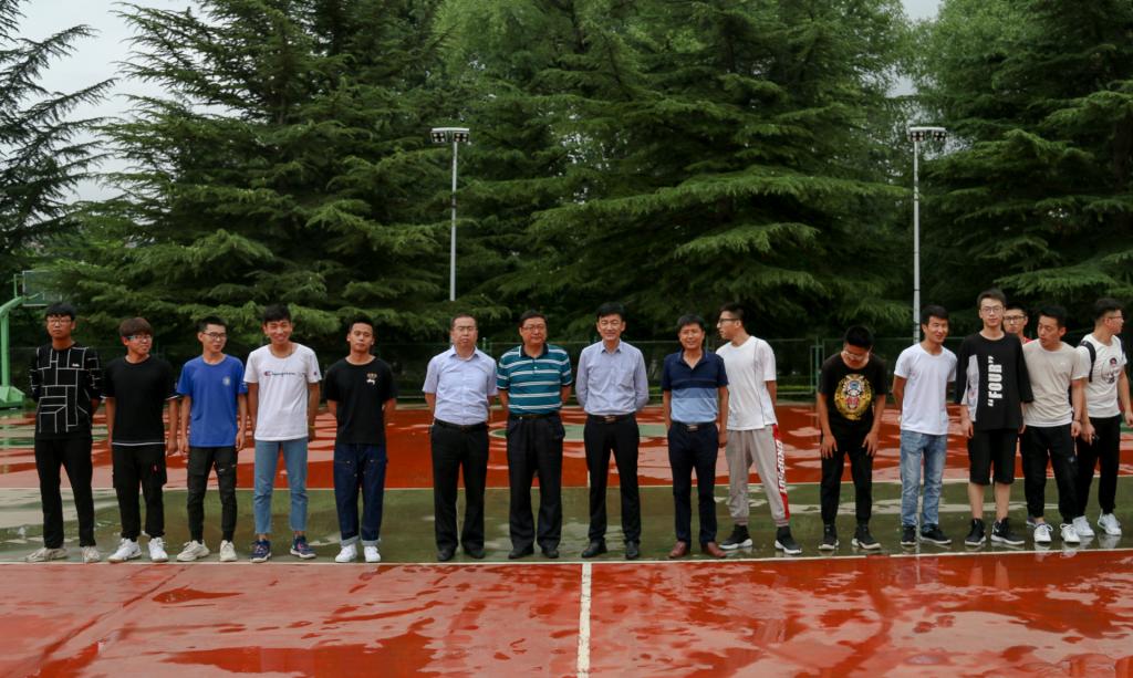 6月21日下午,环境与市政工程学院联系班级领导赵保卫院长、韩建峰副部长、宋小三副院长、李健副院长在学校篮球场参加水1603班和环科1801班的班际友谊篮球赛。水1603班和环科1801班班主任及全体同学参加。