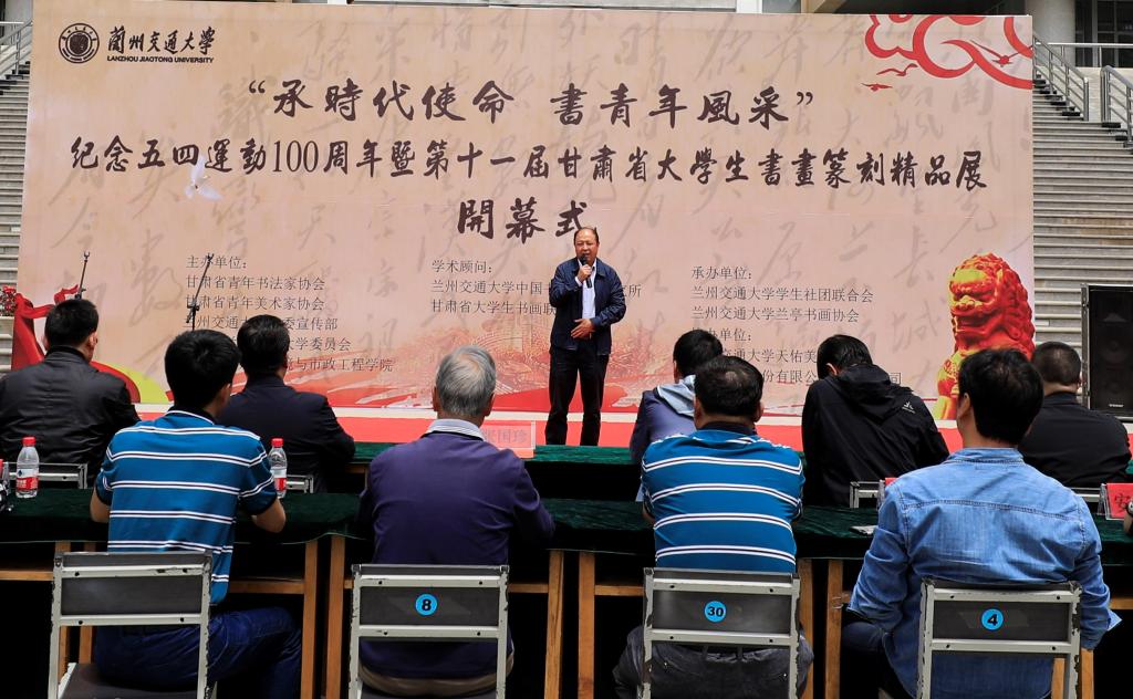 校团委副书记王若凡、甘肃省青年美术家协会副主席郭殿声、甘肃省青年书法家协会副主席王海雄分别为开幕式致辞。