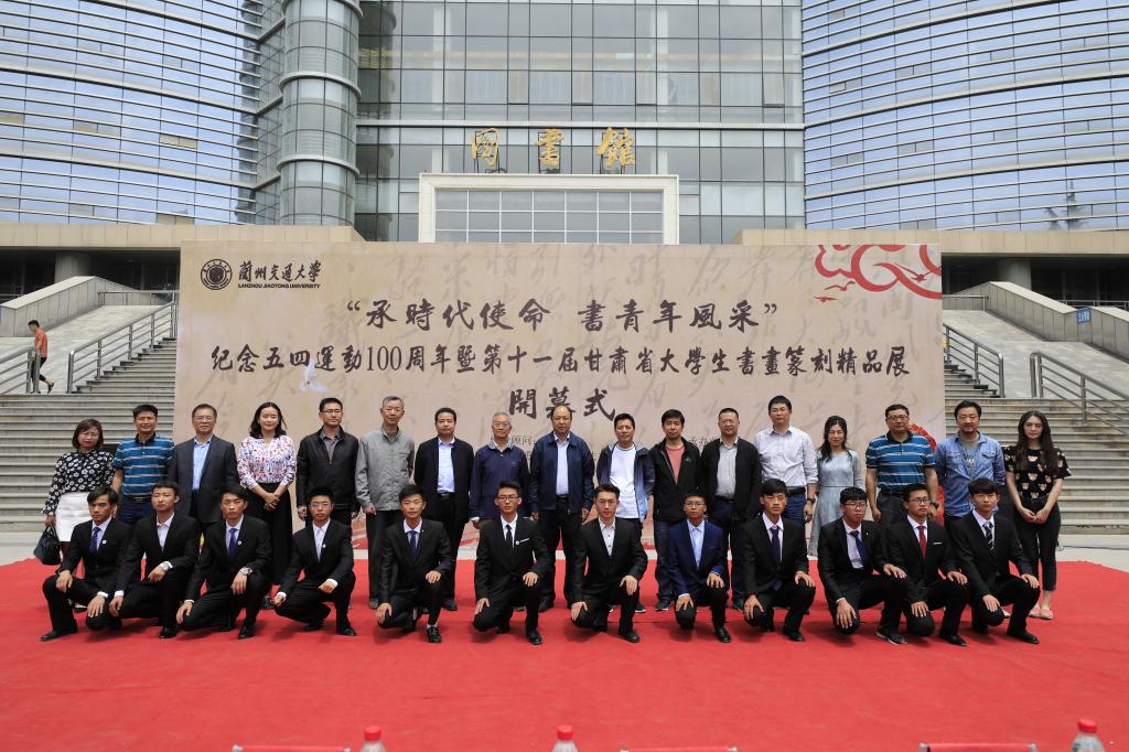 为纪念五四运动100周年,弘扬五四爱国精神,激励引领广大青年学子树牢“四个意识”,坚定“四个自信”,自觉做到“两个维护”,充分展示我省青年学生蓬勃向上的精神风貌,5月23日,由我校与甘肃省青年书法家协会、甘肃省青年美术家协会共同主办的“承时代使命 书青年风采”纪念五四运动100周年暨第十一届甘肃省大学生书画篆刻精品展在我校开幕。兰州交通大学副校长张国珍,甘肃省青年书法家协会副主席王海雄,甘肃省青年美术家协会副主席、兰州交通大学艺术设计学院院长郭殿声以及宣传部、学生处、校团委、公寓管理中心、文学院、环境学院相关负责人出席开幕式。
