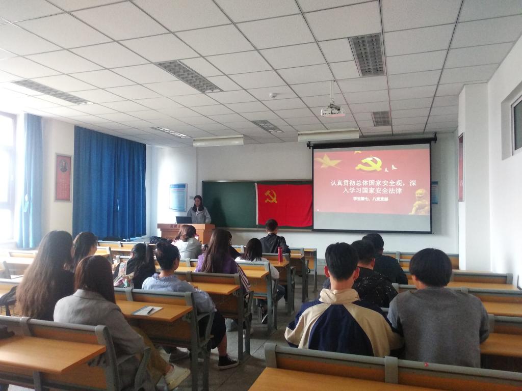 以引导广大师生充分认清国家安全形势和履行国家安全的主体责任为主要目的,营造良好的“全民国家安全教育”宣传氛围。学院17个党支部组织党员集中学习《宪法》《国家安全法》《反恐怖主义法》《网络安全法》等法律法规,部分教师把集中教育活动与课堂教育教学相结合,集中观看《间谍罪名的背后》专题片,通过不同形式深化学习效果,提高活动开展质量。
