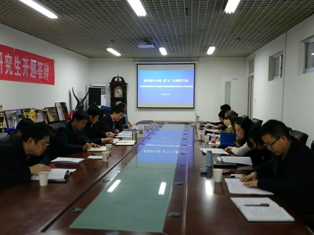 11月15日,环境学院召开党委中心组(扩大)会议,专题学习贯彻全国教育大会及新时代全国高等学校本科教育工作会议精神,党委中心组全体成员,党政办科级以上干部,各系、教研室、实验室、测试中心、教育部工程中心主任20余人参加了学习。会议由学院党委书记杨庆主持。