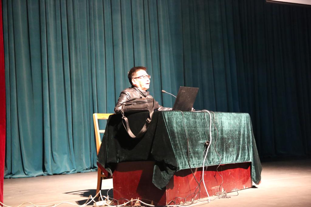 专题辅导报告邀请兰州广播电视传播中心主任、二级导演,甘肃省电影家协会副主席,甘肃省中青年德艺双馨文艺工作者、兰州市第一批金城文化名家丁如玮老师。丁老师做了题为《观纪录片,谈抗战史——由抗战史料看中国共产党的中流砥柱作用》的辅导报告。
