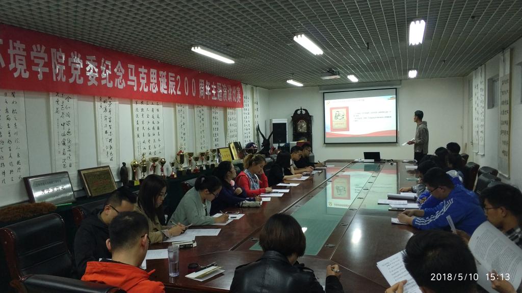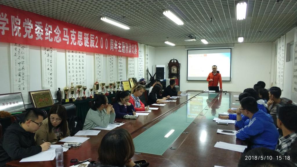 为深入学习习近平总书记在纪念马克思诞辰200周年大会上的重要讲话精神,深刻理解习近平新时代中国特色社会主义思想的马克思主义精神实质和时代发展,我院党委于2018年5月10日下午在学院1215小会议室举办“我心目中的马克思”主题演讲。学院35名发展对象参加比赛。