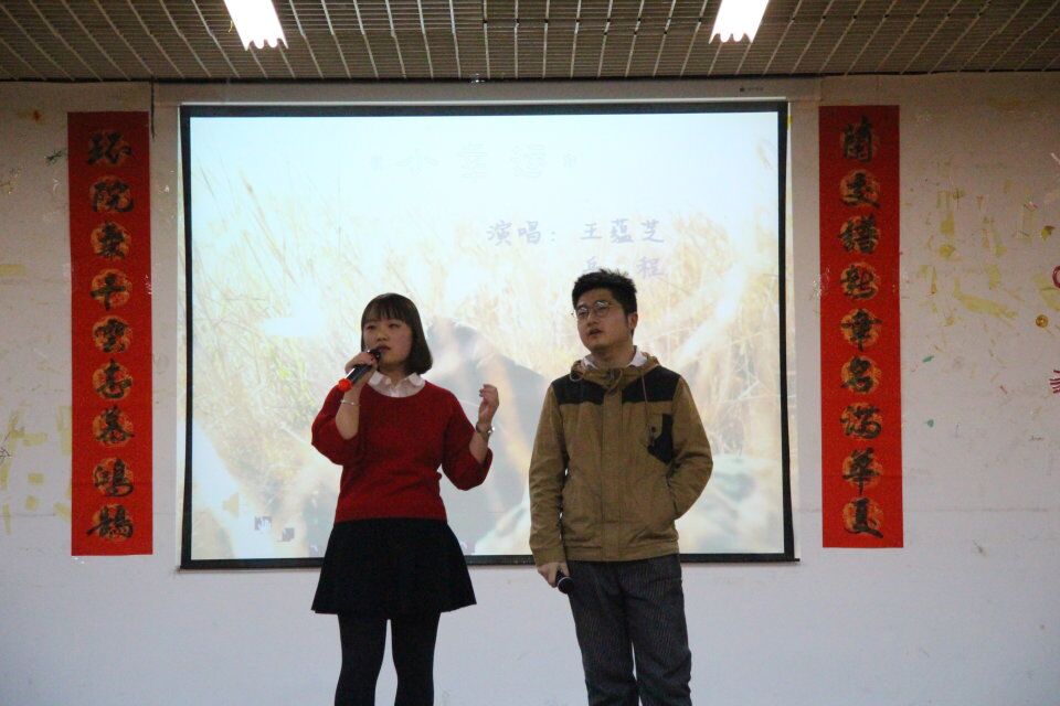 首先,杨庆副院长发表了新年贺词,向大家致以新年的祝福!并寄语全体研究生,希望大家勤奋学习、潜心研究、勇于创新!随后,晚会在穿着玩偶服的帅哥靓女们呆萌可爱的搞笑广播体操中拉开帷幕,瞬间点燃了全场的热情。歌曲《在那遥远的地方》歌声浑厚,赢得阵阵掌声;一首英文的吉他弹唱《Let her go》因留学生优美的嗓音和娴熟的吉他技巧让现场气氛升温;笛子演奏《友谊地久天长》笛声优美,让同学们回味不已;此外,男女合唱《小幸运》、独唱《情人》、合唱《你被写在我的歌里》使现场晕染着青春的气息,仿佛回到了青涩的学生时代。之后朱琳和崔景科的双人爵士舞由于两人的默契配合和动感十足的舞姿引来了同学们的阵阵喝彩声。晚会的语言类节目也相当精彩,小品《疯狂伐木累》,歌舞剧《灰姑娘》通过生动的表演,幽默风趣的语言和经由同学们改变的宫廷舞蹈《PPAP》让在场的观众大笑不止。研二、研一同学一起献上一首《北京北京》,动听的旋律将晚会推向了另一个高潮。最后,在大家对节目的叫好声和欢笑声中元旦晚会拉下了帷幕,主持人上台宣布迎新晚会圆满结束。