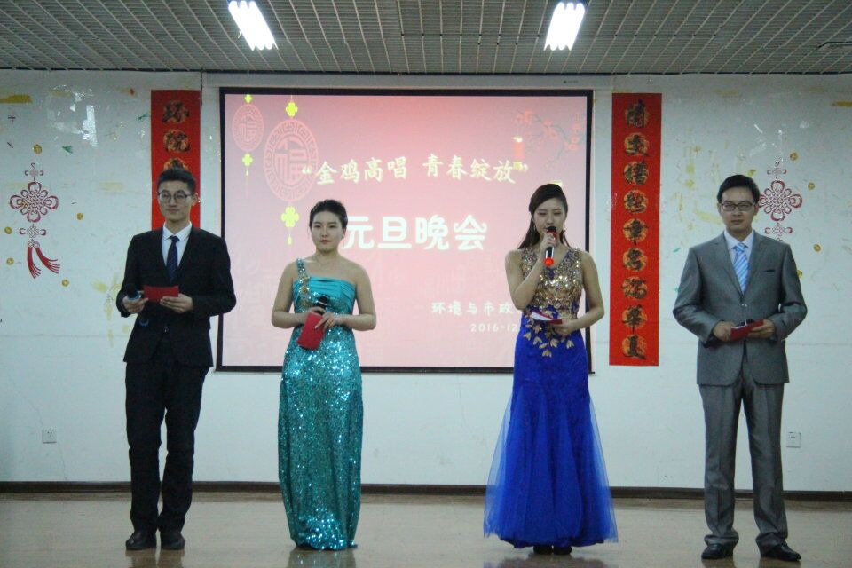 在元旦来临之际,为了丰富同学们的课余文化生活,搭建师生互动交流平台,环境院研究生会于2016年12月30号在图书馆1200教室举行了一场以“金鸡高唱,青春绽放”为主题的新年联欢晚会。学院领导李师翁书记、杨庆副院长、部分研究生导师和研办老师参加了晚会。