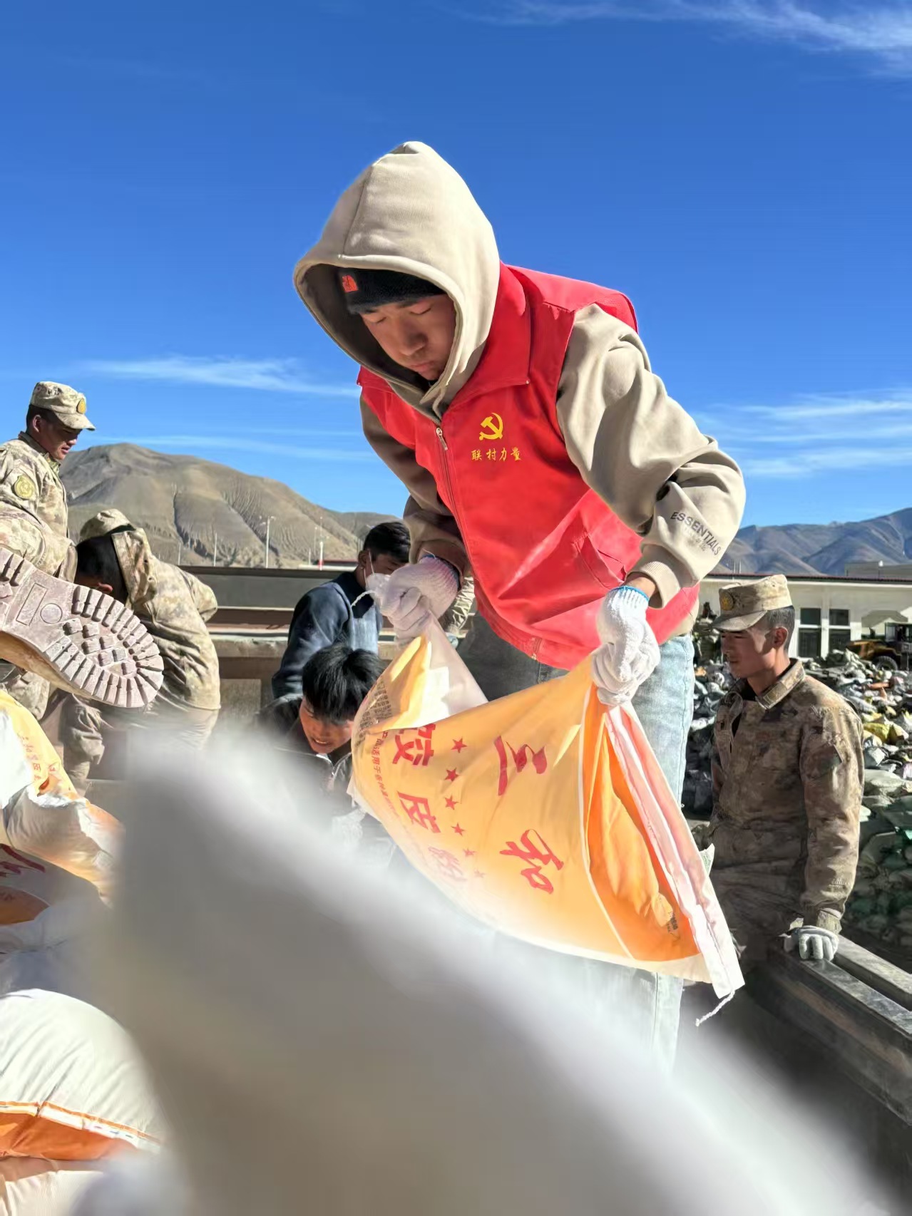 这次突如其来的灾难,他家房屋严重受损,财物遭受了不小损失,食品和御寒物资十分短缺,全家人都在赈灾帐篷中居住。可在目睹周边邻里同样深陷困境,救援物资急需搬运分发时,他没有丝毫犹豫,返乡的第一天就报名加入了志愿者队伍。救灾帐篷一顶就有上百斤重,调运来的御寒物资、食品更是源源不断,这在海拔4000米以上的高原,对个人体力和耐力是一种不小的挑战,为了能把爱心物资尽快送到最急需的地方,旦增热卓和其他志愿者一起肩扛手提,对救援物资进行分类、转运和发放,帮助乡亲们搭建临时帐篷,参与协调群众安全转移,一刻不停地穿梭在临时安置点与物资存放处之间,用实际行动诠释了当代青年大学生的责任和担当。