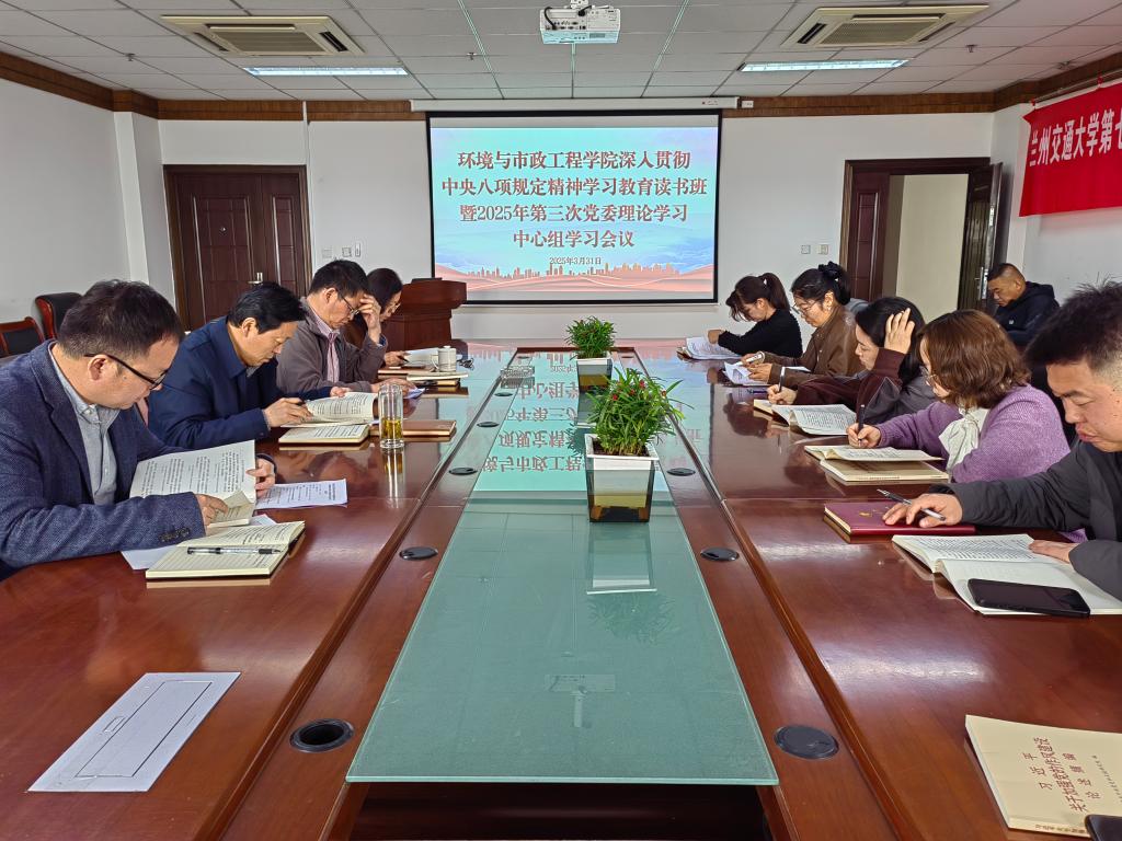 2025年3月31日,环境学院召开深入学习贯彻中央八项规定精神读书班暨2025年第三次党委理论学习中心组学习会议,学院领导班子成员、教工党支部书记、科级干部及辅导员参加学习,学院党委书记王海涌主持会议。