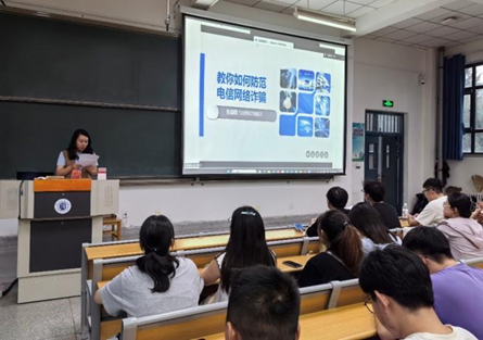 报告结合近年来高发、典型的电信网络诈骗案例,系统剖析了常见诈骗手法,如冒充公检法、网络刷单、虚假贷款、钓鱼链接和冒充熟人等诈骗类型。通过真实案情再现、数据分析和互动提问,深入揭露诈骗分子的运作模式与心理控制套路,提醒同学们应增强法律意识,坚决杜绝出租、出借、出售个人“两卡”,避免成为犯罪“工具人”。同时,做到“三不一多”——不轻信、不透露、不转账,多核实,遇到可疑情况主动与师长沟通或及时报警。