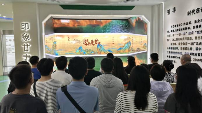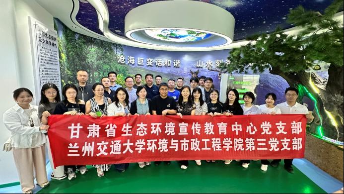 当日下午,支部赴甘肃省生态环境宣传教育中心开展研学。在“印象甘肃”篇的沉浸式空间,党员们通过互动模式亲自身临甘肃裸眼立体等高地貌动效地图,透过动态碳汇监测图理解“双碳”战略的甘肃实践。支部书记黄魁同志表示:“将把黄河水土保持、深入打好污染防治攻坚战等案例融入专业课教学,培养服务西部生态建设的创新人才。”