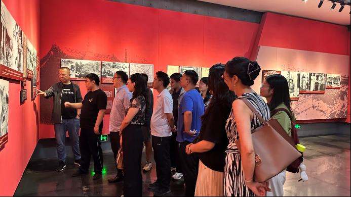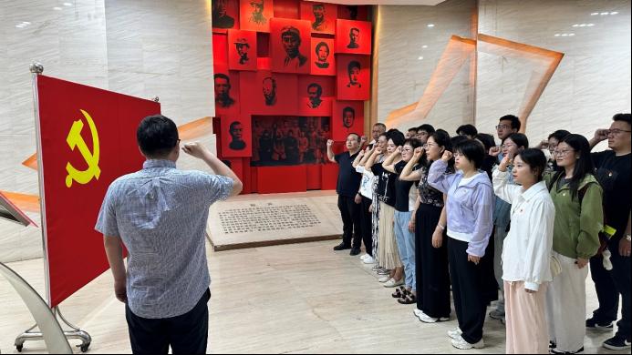 “1937年这里输送了4000多名进步青年奔赴延安”,青年教师付宁在伍修权办公室旧址前感慨,“革命先辈在物资匮乏中坚持办‘红色学堂’,今天的我们更应坚守教育报国初心!”全体党员面向党旗庄严宣誓,铿锵誓言在展厅中久久回荡。