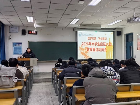 为加大征兵宣传进校园工作力度,进一步激发高校学生参军报国热情,根据学校《关于做好2026年上半年征兵宣传动员工作的实施意见》精神,学院党委坚持把做好这项工作作为一项政治任务和育人工程来抓,提前着手、超前谋划,周密组织、精心实施,确保了2026年春季征兵宣传动员工作迅速展开、有力落实。