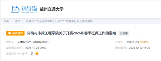 紧扣 “参军报国、无上光荣”这个主题,通过采取一系列富有成效的宣传动员方法,着力构建“线上线下相结合、集体个体相补充”的全方位、立体化宣传网络。1.深化主题教育,筑牢思想根基:组织全院42个班级统一召开征兵主题班会,由班主任、辅导员深入讲解,并特别邀请退役复学学生“现身说法”,用同龄人的真实经历与成长感悟,生动阐释军旅价值,有效激发了学生的情感共鸣与报国志向。前期开展的“立报国强国大志向,做挺膺奋斗担当者”主题教育活动,为进一步强化榜样引领打好坚实基础。2.拓展宣传载体,实现精准触达:充分发挥信息技术优势,通过“辅导猫”智慧学工平台,向全体本科生精准推送《学院关于开展2026年春季征兵工作的通知》及相关政策解读,确保了全院学生征兵政策知晓率达到100%、确认率达到99.69%。综合利用学院网站、微信公众号、QQ群、班级群等线上阵地,持续发布征兵动态、政策图解、优秀事迹,营造了持续不断的浓厚氛围。3.夯实线下阵地,营造浓厚氛围:在学院前厅、宿舍区等显著位置设立政策宣传展板、张贴海报横幅,详细介绍入伍流程、优待政策。在学工办设立专门的征兵政策咨询点并公布咨询电话,为学生提供“面对面、一对一”的个性化咨询服务。4.协同联动宣讲,扩大辐射效应:于12月25日成功联合交通运输学院、经济管理学院、艺术设计学院举办四院征兵政策集中宣讲会。我院选派经验丰富的辅导员、退役士兵张文杰老师担任主讲,以其兼具政策高度与个人体悟的宣讲,有效提升了宣讲的吸引力和感染力,实现了资源共享与合力效应。5.聚焦关键群体,推动精准动员:在广泛宣传的基础上,着力对毕业生群体开展“一对一、面对面”的精准沟通与意向摸排。通过建立动态台账,详细了解学生学业、就业情况及参军意向,有针对性地解答疑虑,帮助算清“政治账、成长账、经济账”