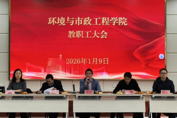 大会伊始,院长杨庆总结了2025年工作,并对近期工作进行逐项安排。党委书记王海涌宣读了《环境与市政工程学院关于表彰2025年度先进集体和个人的决定》,对表现突出的先进集体和个人进行表彰并颁发荣誉证书,号召全院教职工牢记立德树人根本任务,以学校“1152”目标为指引,向榜样学习,再接再厉,打好学院“十五五”发展的开局年。