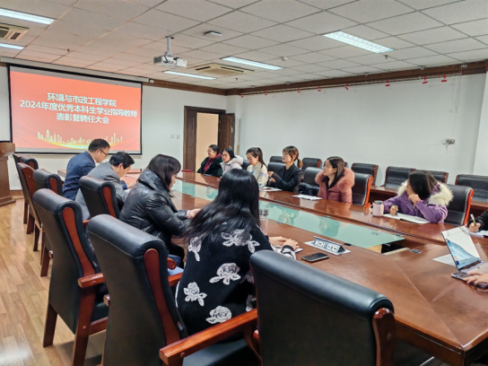2024年12月27日早上9点30分,环境学院在尚德楼1618举行2024年度优秀本科生学业指导教师表彰暨2024级本科生学业指导教师聘任大会。党委书记王海涌、副院长黄魁、教务办全体人员、学院全体本科生学业导师和2024级新聘任本科生导师参加了此次会议。会议由副院长黄魁主持。