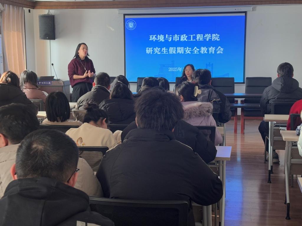 1月7日下午,环境学院在尚德楼1802教室成功召开2025届研究生就业、学业指导、安全教育会。本次会议由马娟副院长主持,针对即将到来的寒假,就研究生就业、学位论文撰写及假期安全三个重要议题展开指导。