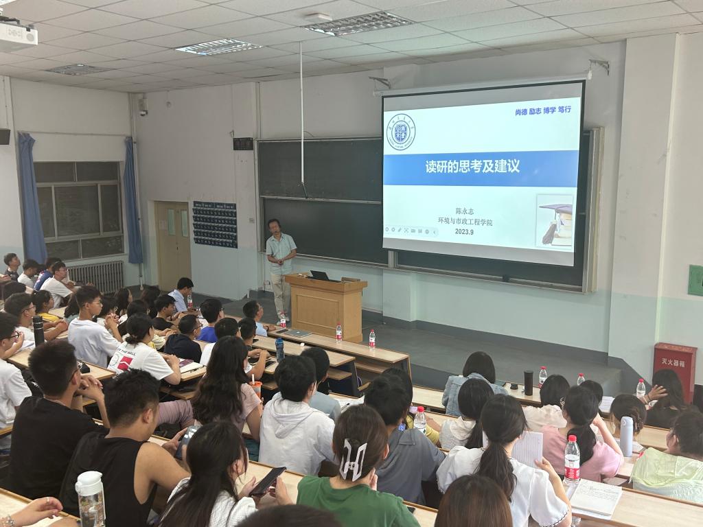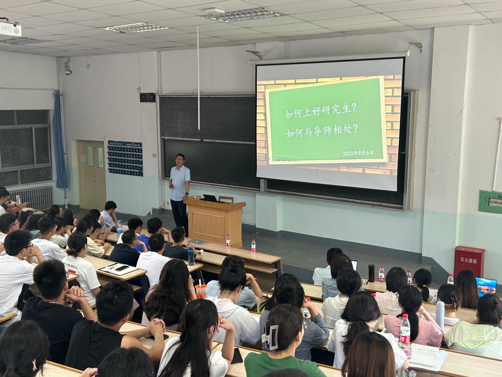 陈永志教授对关于“读研的几点建议与思考”做了精彩的专题报告,与同学们分享交流了如何实现本科向研究生的过度、研究生如何开展科学研究和提高科研能力,如何高效规划研究生学习等问题。陈永志教授提出研究生要有学习科研的责任感,与亲人和时间奉献的罪恶感,期望研究生成为“三能”型人才:坐下来能写,站起来能说,走出去能干。最后,对同学们表达了诚挚的期盼,希望同学们不怕摔倒、克服学习以及科学研究中的种种困难,最终实现自我的突破。